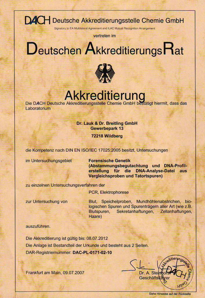 2007 Reakkreditierung im Bereich Forensische Medizin, Toxikologie, Biologie nach DIN