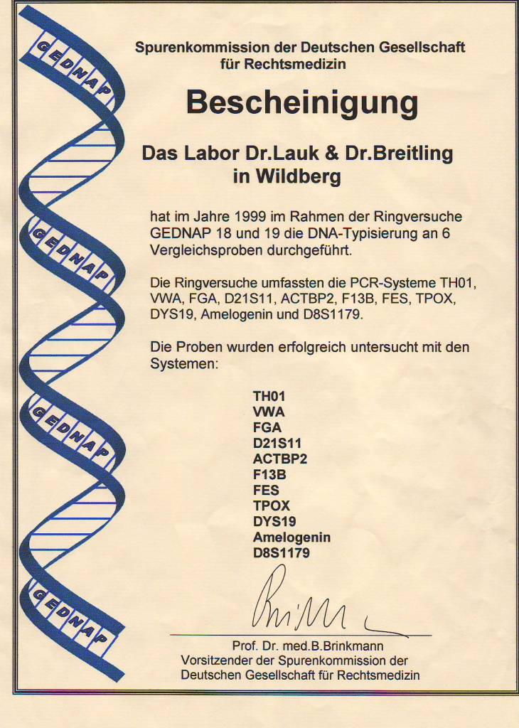 1999 Erfolgreiche Teilnahme an den beiden GEDNAP-Ringversuchen 18 und 19 der