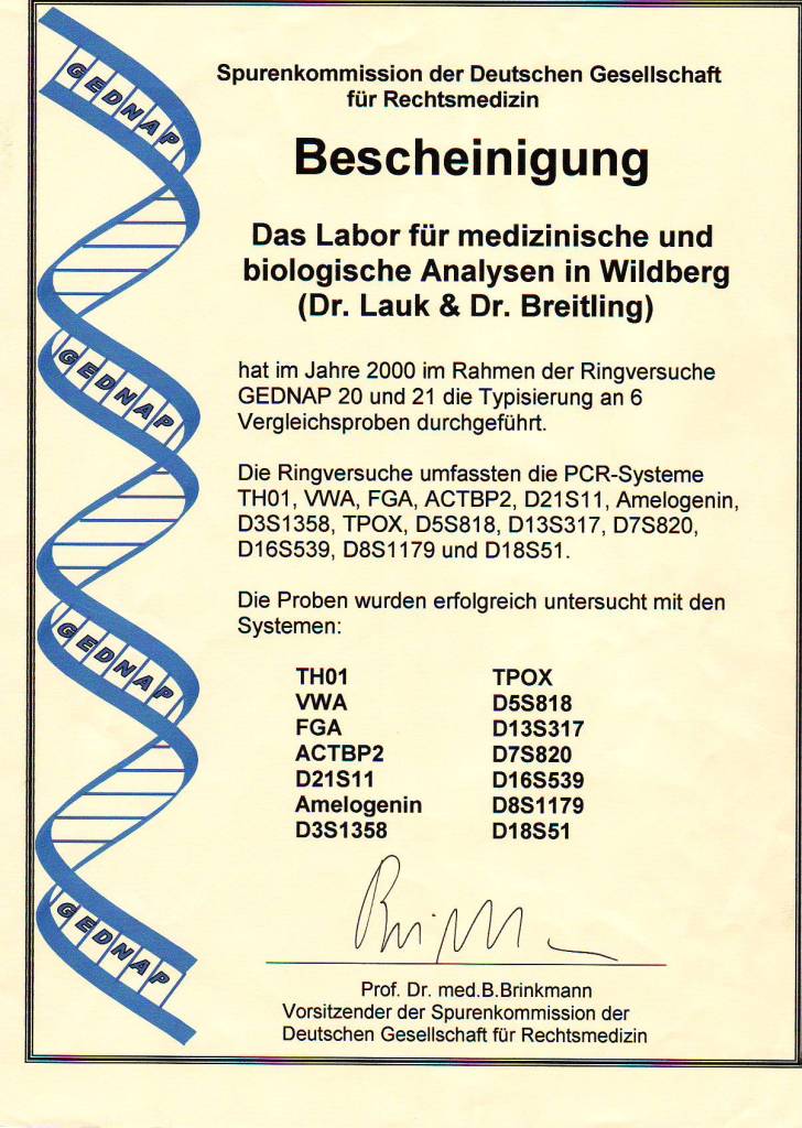 2000 Erfolgreiche Teilnahme an den beiden GEDNAP-Ringversuchen 20 und 21 der