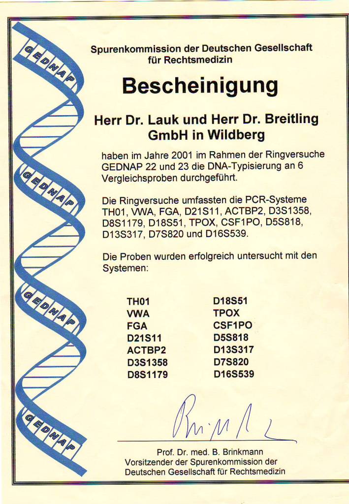 2001 Erfolgreiche Teilnahme an den beiden GEDNAP-Ringversuchen 22 und 23 der