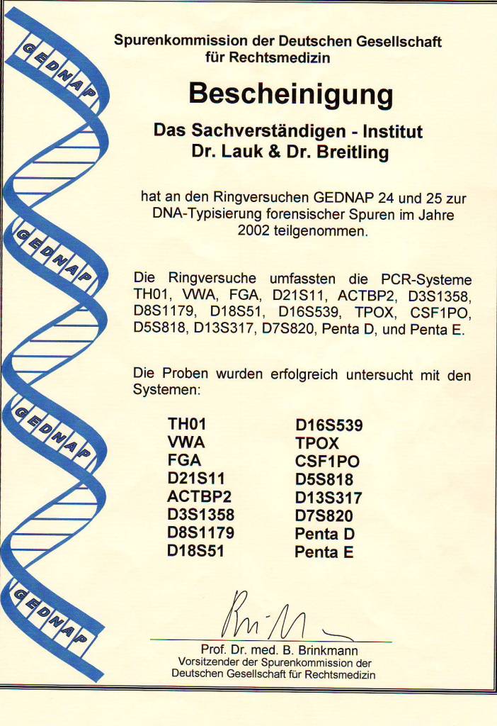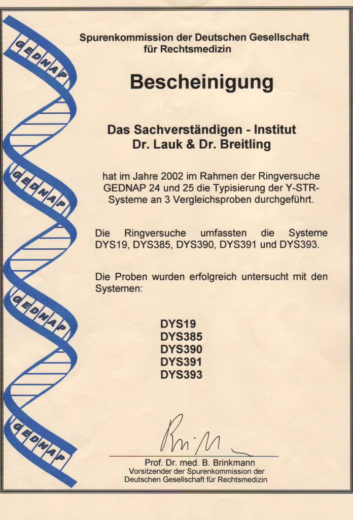 2002 Erfolgreiche Teilnahme an den beiden GEDNAP-Ringversuchen 24 und 25 der