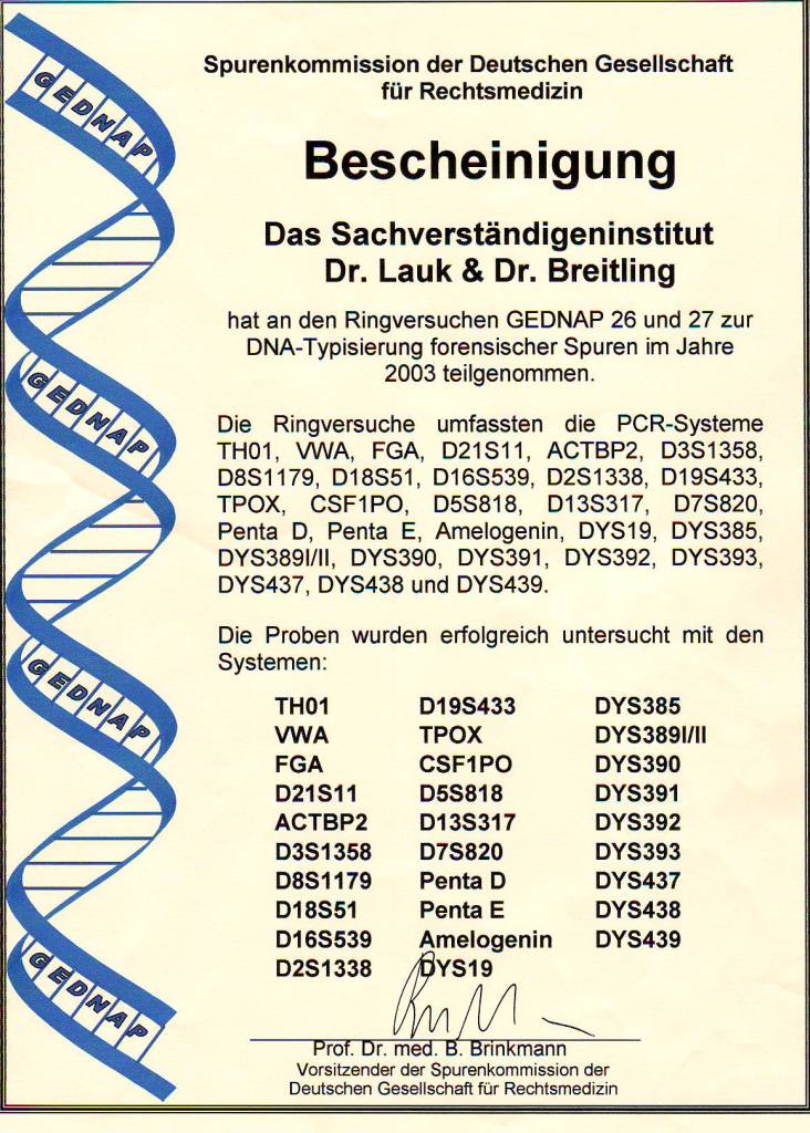 2003 Erfolgreiche Teilnahme an den beiden GEDNAP-Ringversuchen 26 und 27 der