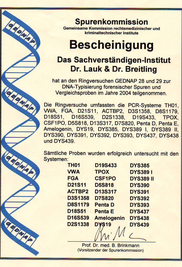 2004 Erfolgreiche Teilnahme an den beiden GEDNAP-Ringversuchen 28 und 29 der