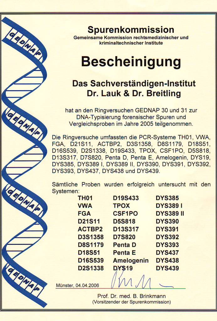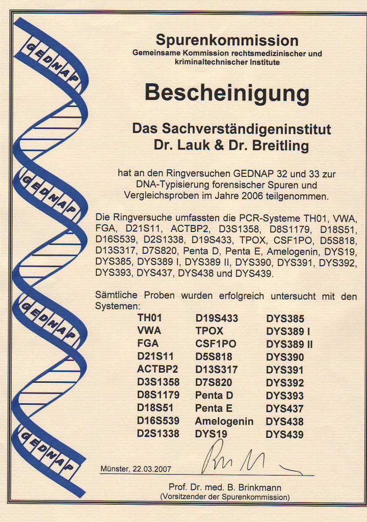 2006 Erfolgreiche Teilnahme an den beiden GEDNAP-Ringversuchen 32 und 33 der
