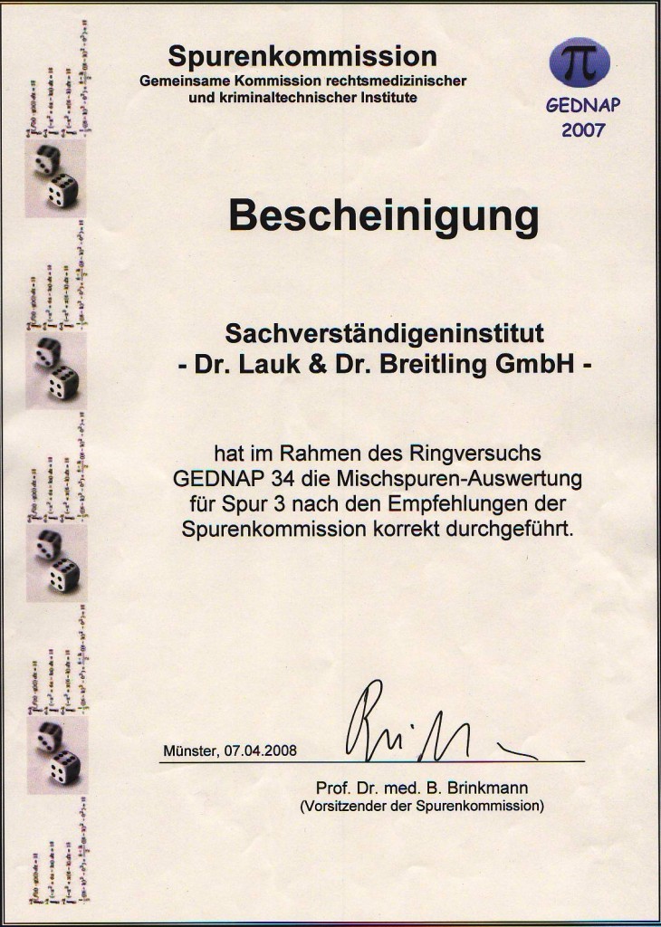 2007 Erfolgreiche Teilnahme an den beiden GEDNAP-Ringversuchen 34 und 35 der