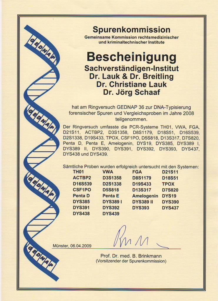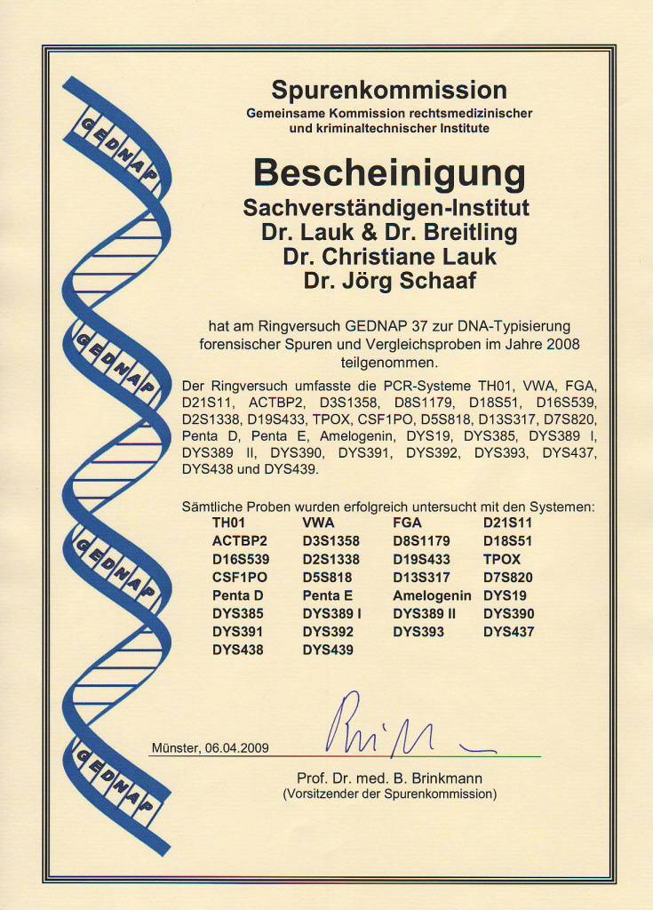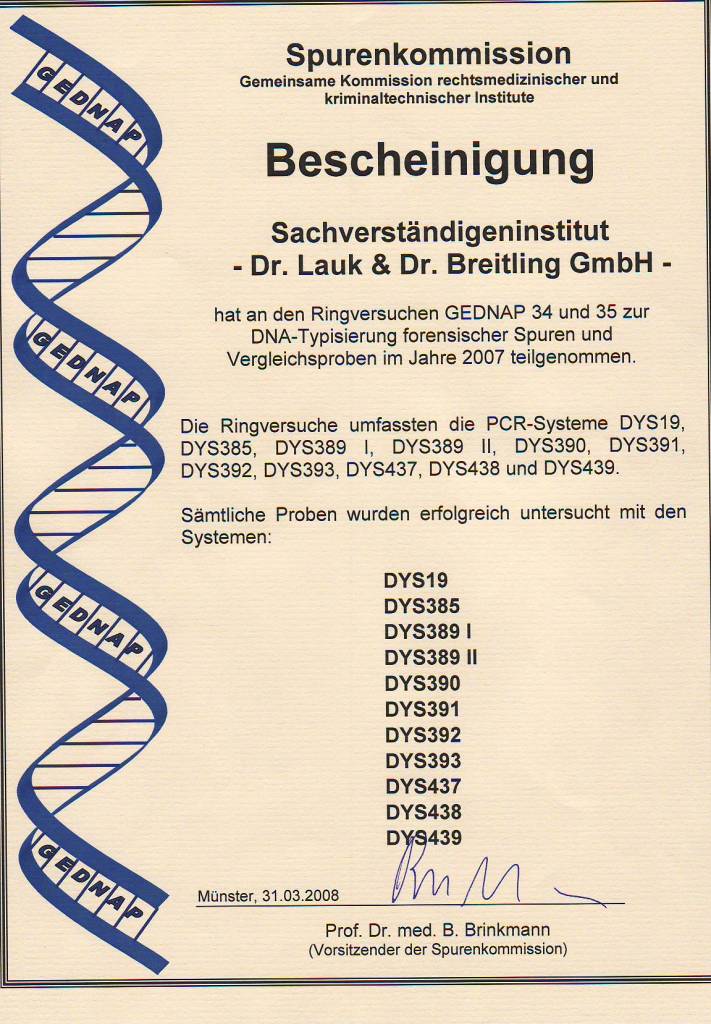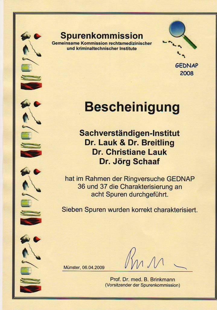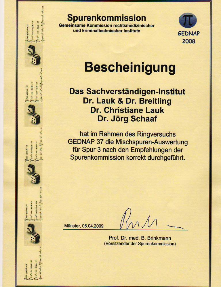 2008 Erfolgreiche Teilnahme an den beiden GEDNAP-Ringversuchen 36 und 37 der